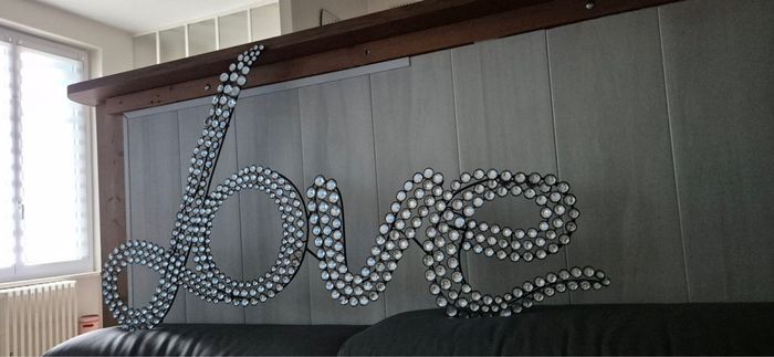 Bonjour je vend ma décoration love en strass en bonne état Hauteur 28 cm Longueur 44 cm