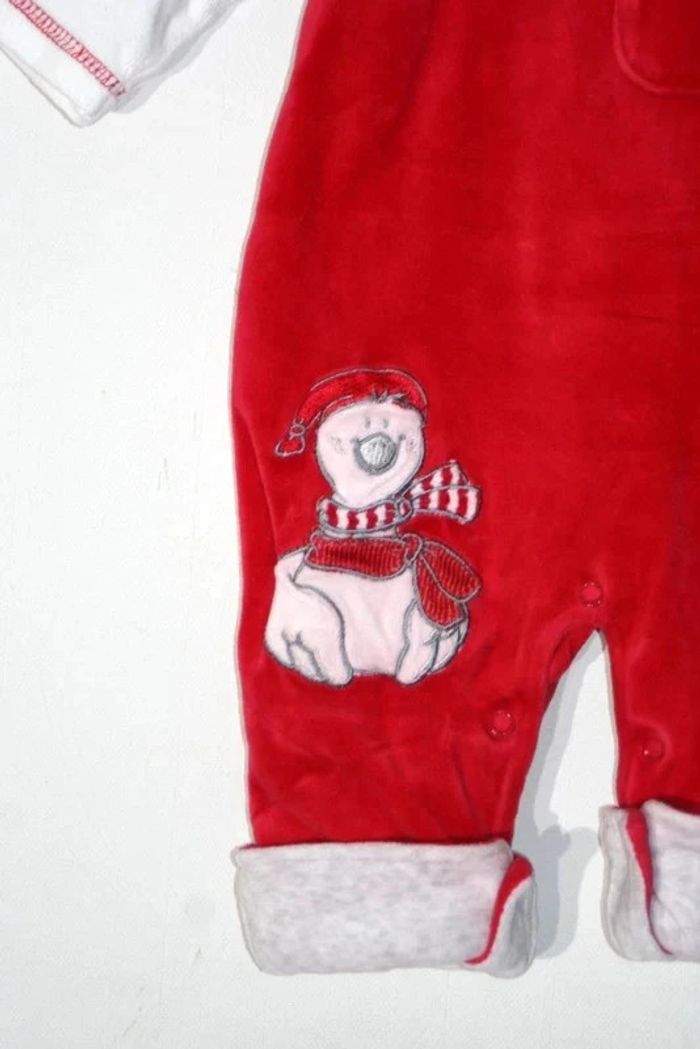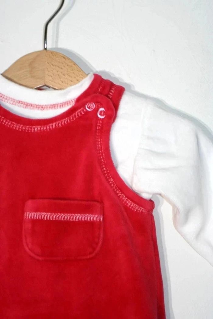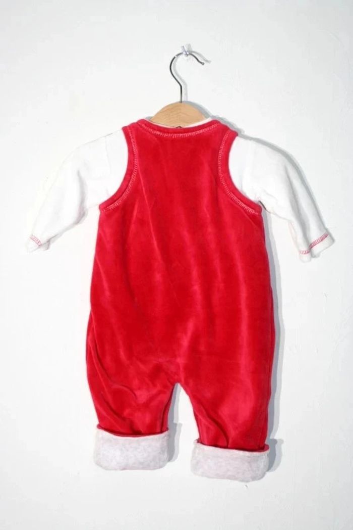 Ensemble chaud velours composé d'un haut manches longues blanc cassé et d'une salopette molletonnée rouge 3 mois, 240g