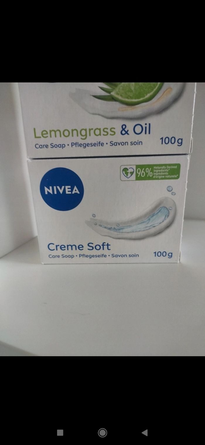 Deux savons neufs, un crème soft et l'autre lemongrass et oil. 100 g chacun, 96 % d'ingrédients d'origine naturelle. Encore dans leur emballage