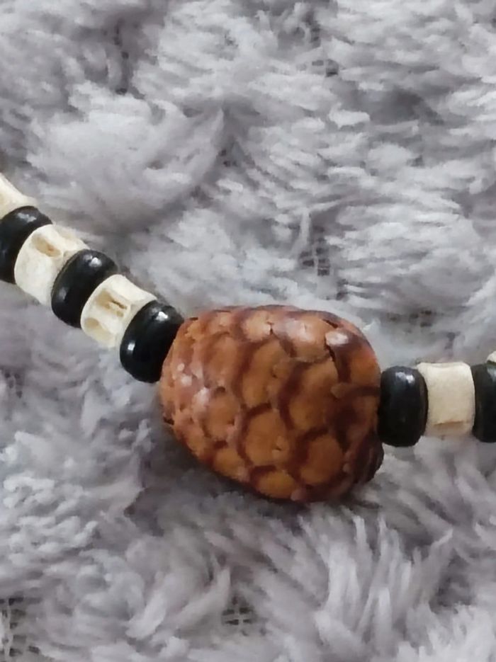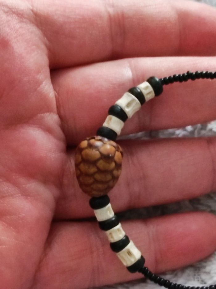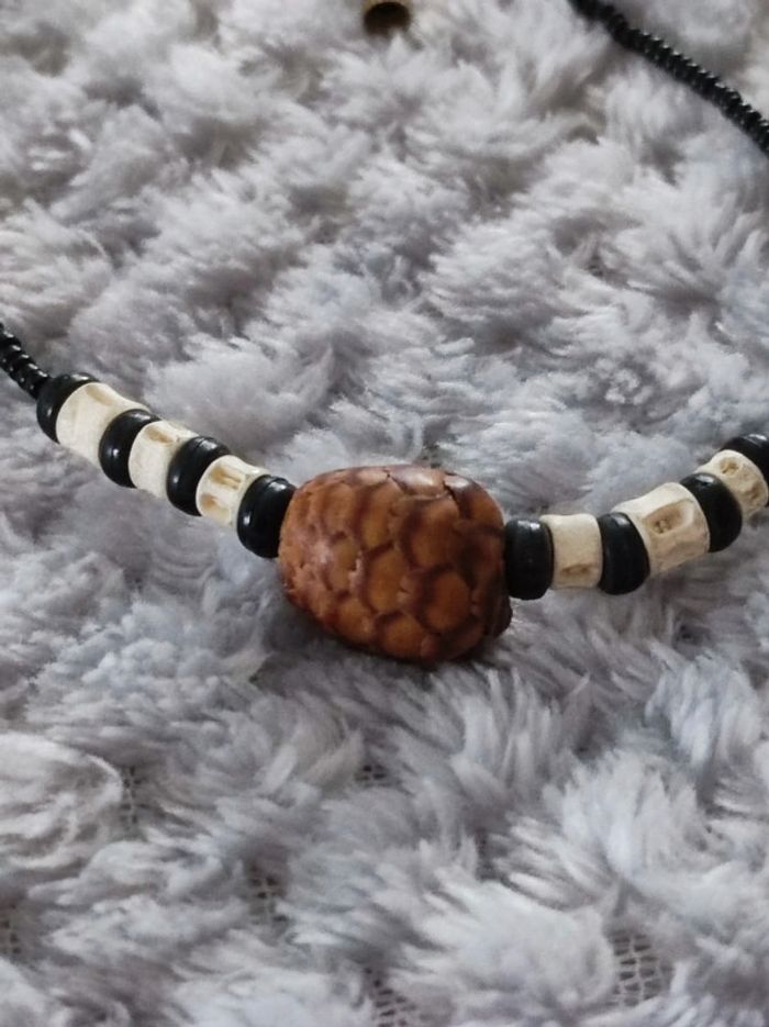 Collier ethnique de type africain en perles et pendentif imitant une pomme de pin 40 cm