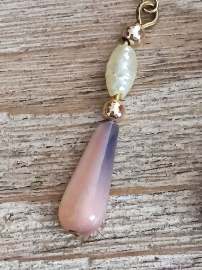 Très jolies paire de boucles d'oreilles vintage forme de gouttes, la pierre doit être une pierre de lune au vu de la phophoressance qu'elle transmet, impossible à photographier Des petites traces sur l'attache voir photos, minimes 5 cm
