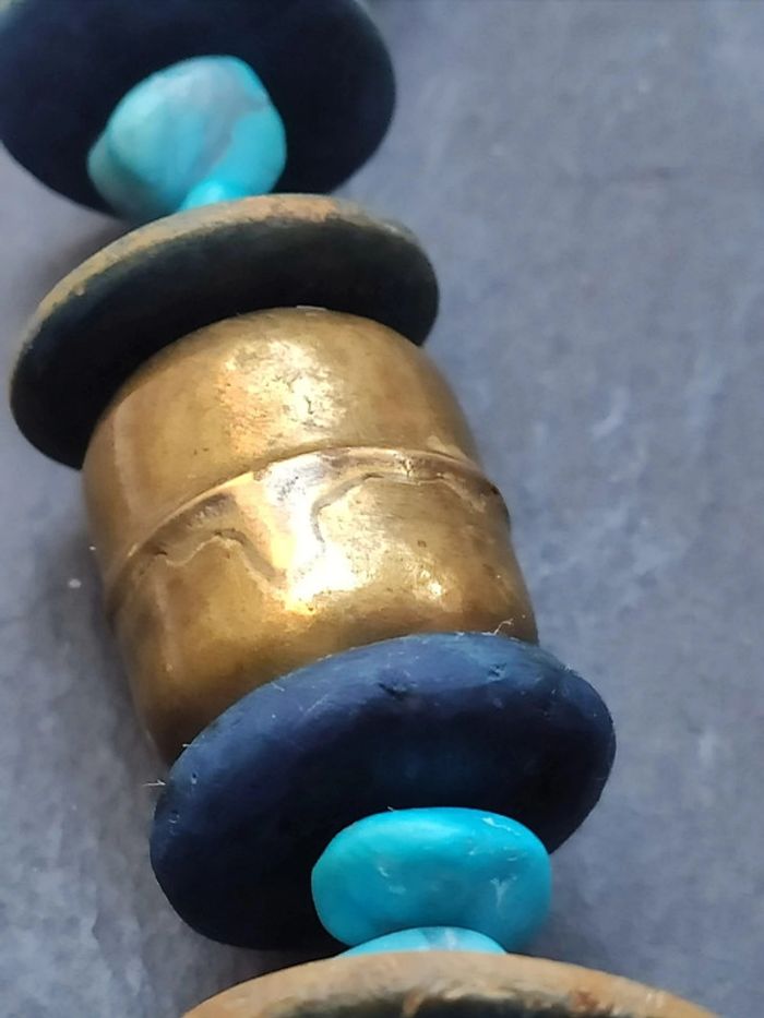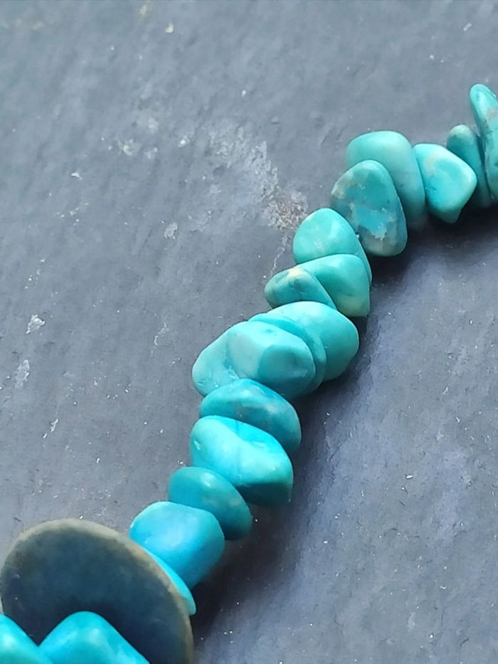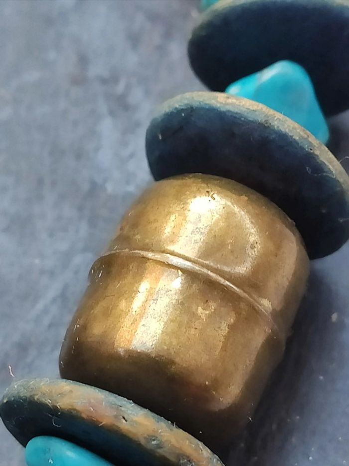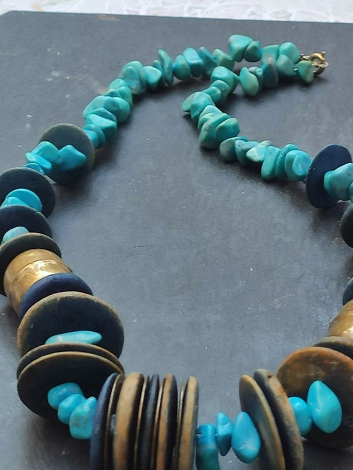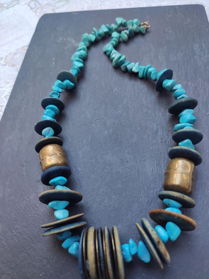 Collier vintage turquoises et cuivre court Usures dues au temps, il sera comme sur les photos