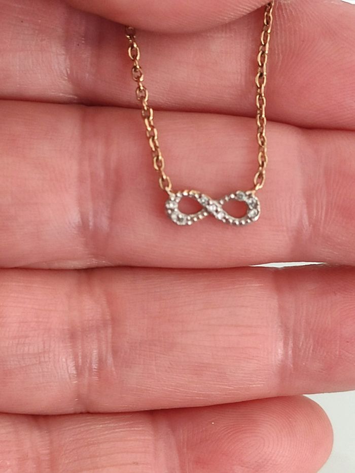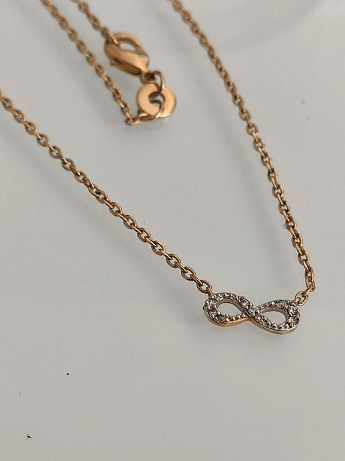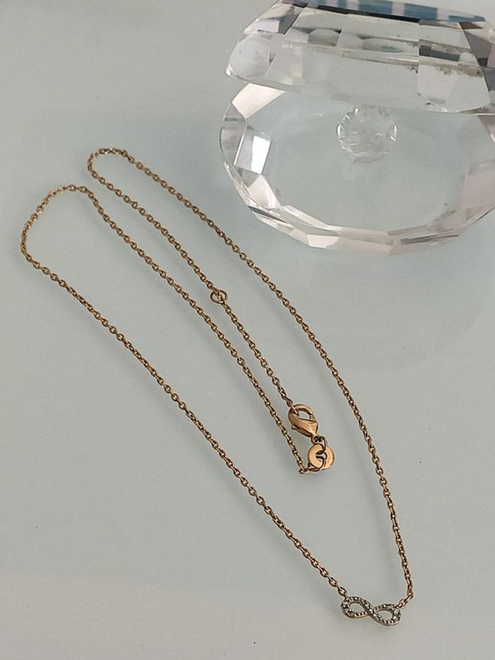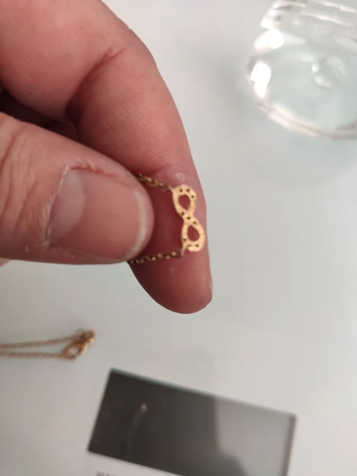 Très jolie et fine chaîne en plaqué or avec le symbole infini, 45 cm