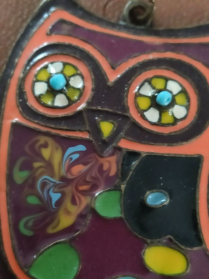 Chouette pendentif en cloisonné