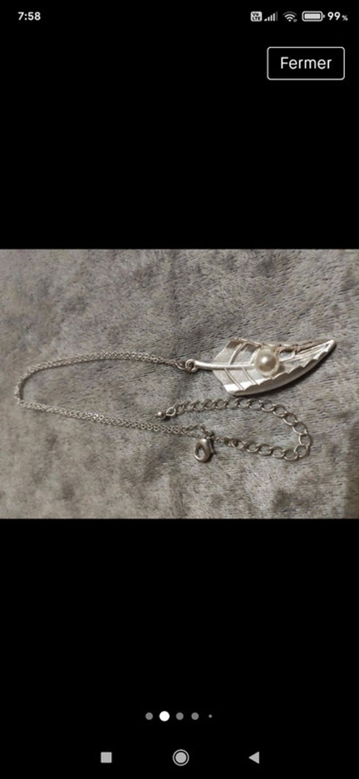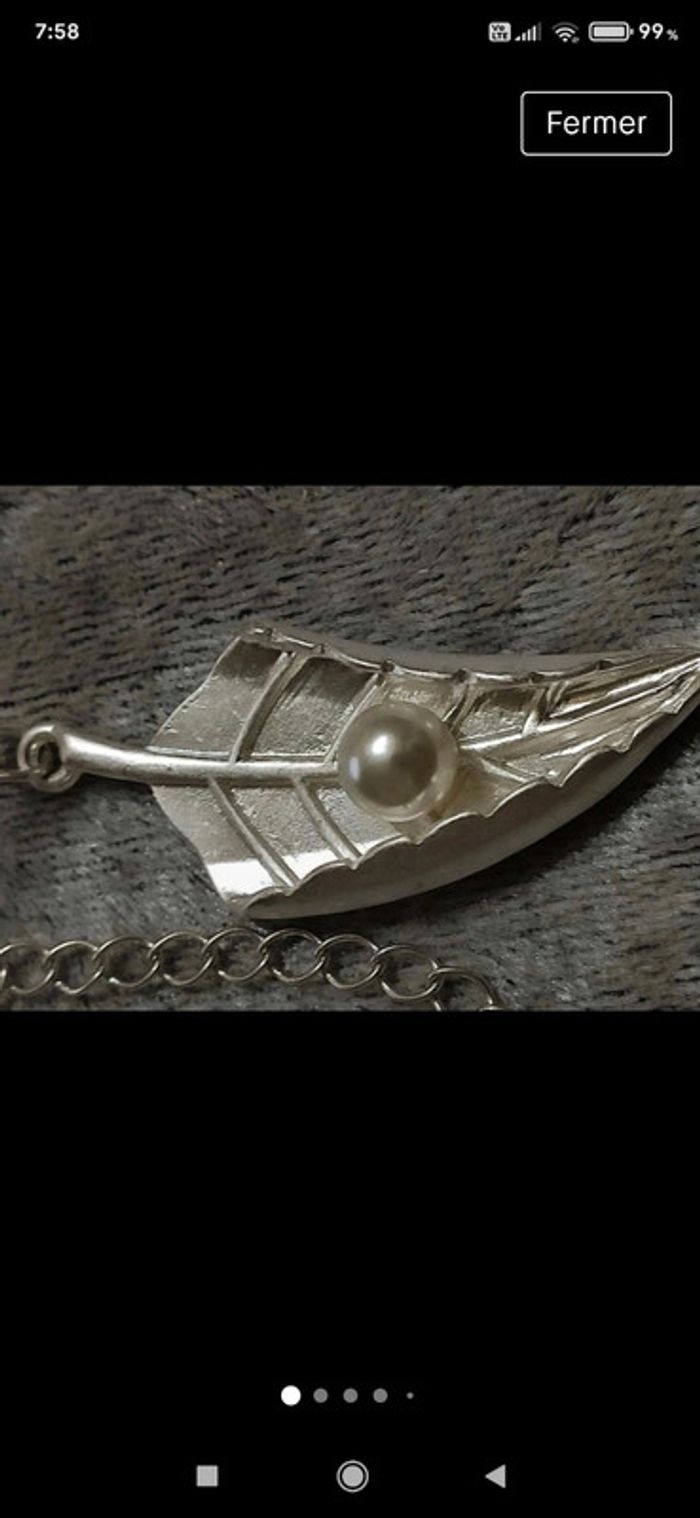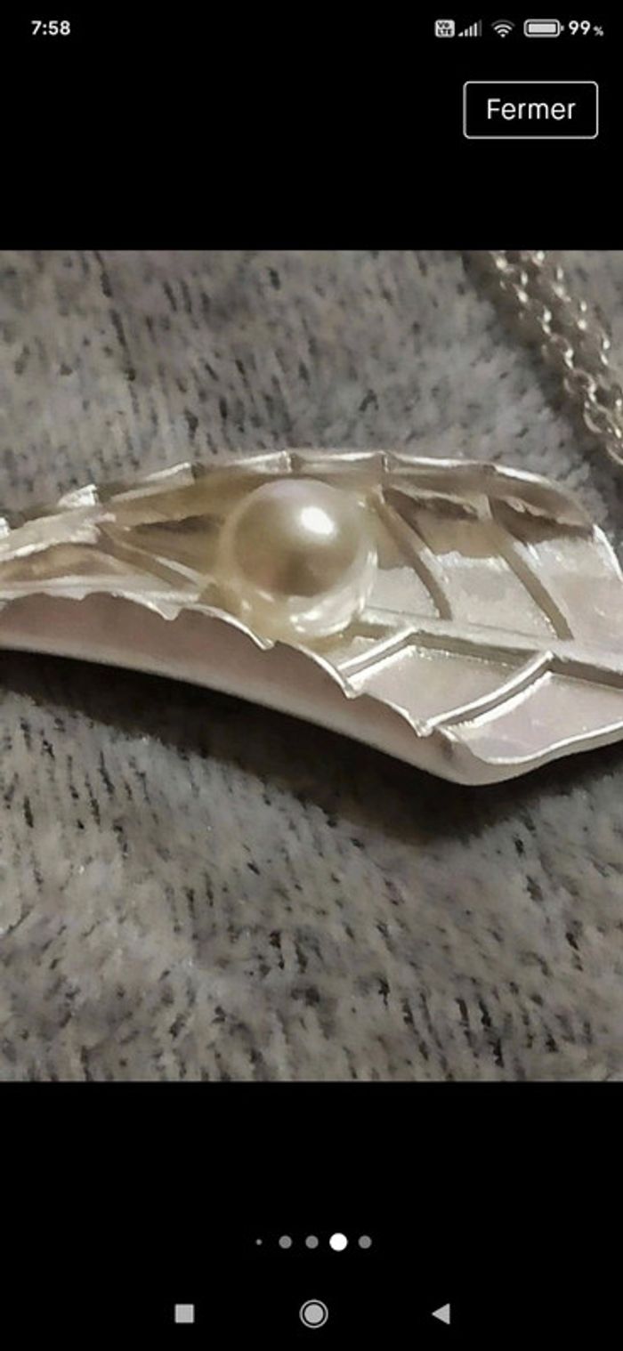 Très jolie chaîne courte en acier et pendentif avec vraie perle Ketting, collar, collant, necklace