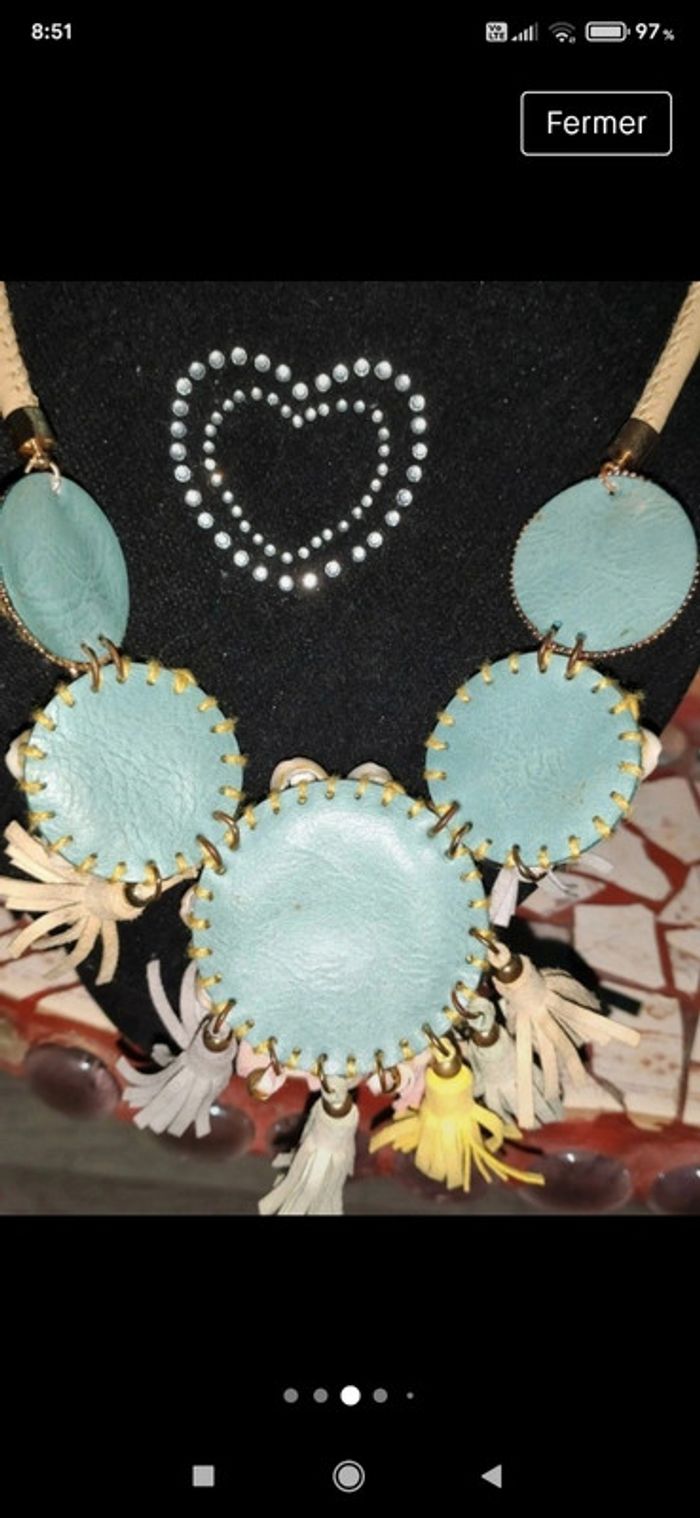 Très joli collier fantaisie cuir et coquillages vintage