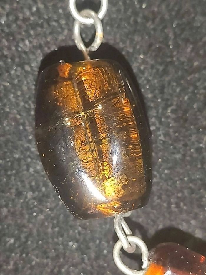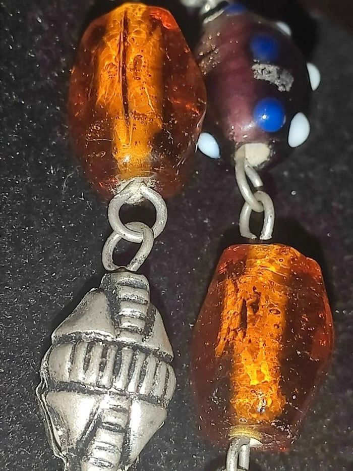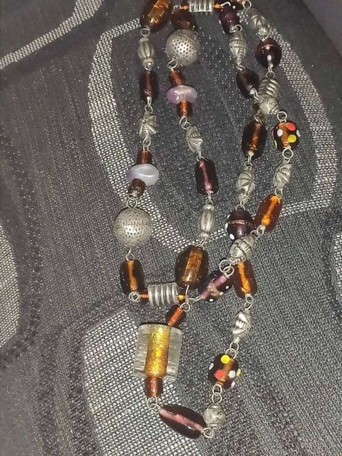 Très long collier 1m10 de perles de verre et argentées, artisanat, vintage, couleurs ambre #mayca1969collier Ketting, collar, collant, necklace