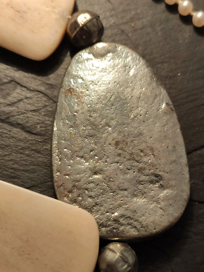 Collier rétro en os et métal semble t'il, pas tout jeune pour un esprit very vintage Ketting, collar, collant, necklace