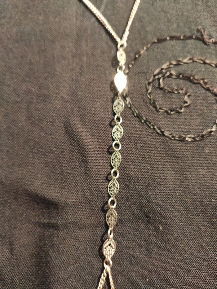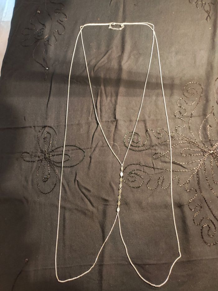 126 cm pour cette jolie chaîne fine double argentée Ketting, collar, collant, necklace