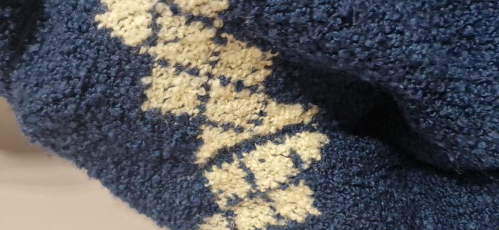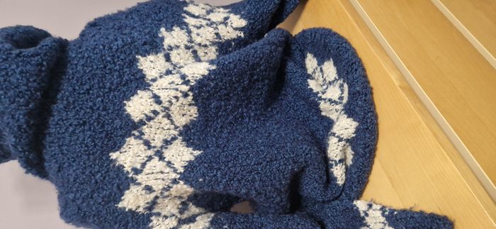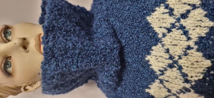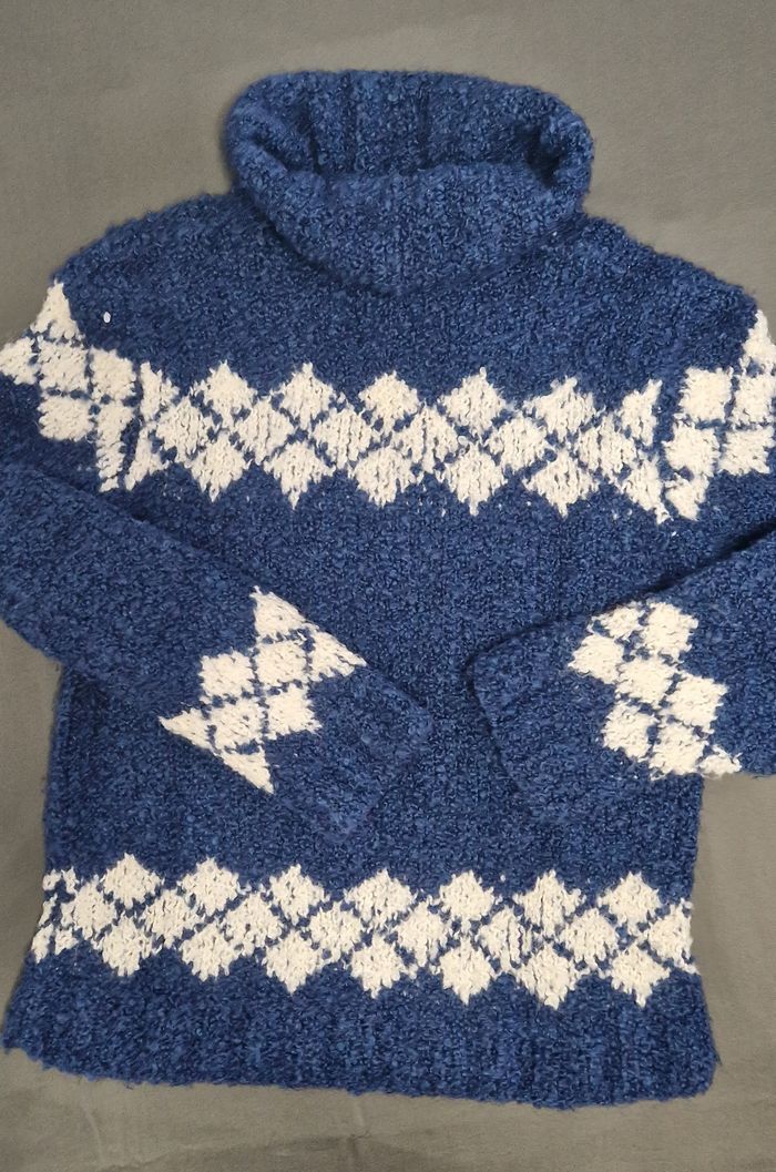 Gros pull en laine à motifs losanges et col roulé qui peut se porter monté Taille L (aisselle à aisselle : 56 cm - extensible / longueur : 72 cm) Echarpe (210 x 10 cm) de même maille offerte TB état