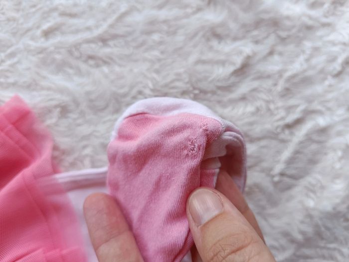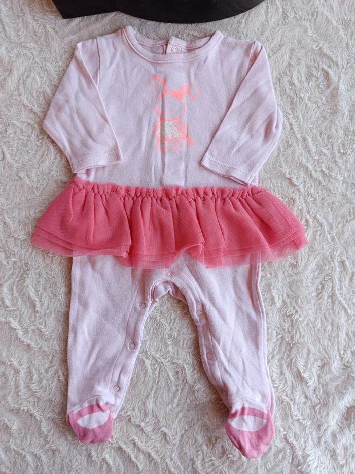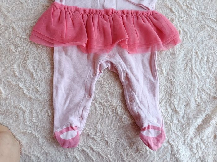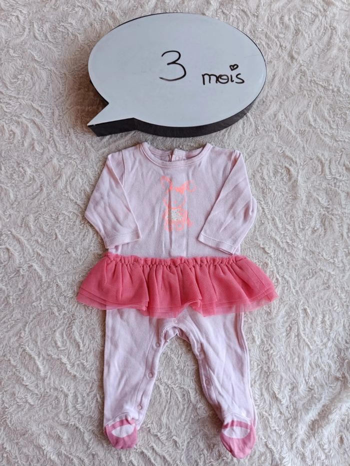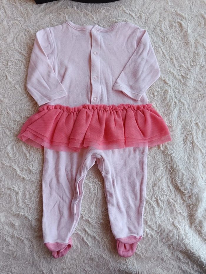 Bon état car il y avait 2 petits trous sous un des pieds que j'ai recousu (voir la dernière photo). Ouverture par pressions au niveau de l'entrejambe pour un habillage et un change plus facile. #nathatfcFille3mois