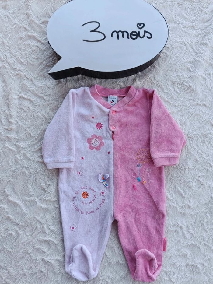 Pyjama grenouillère velours Fille 3 mois Fleurs papillon Absorba - photo numéro 1