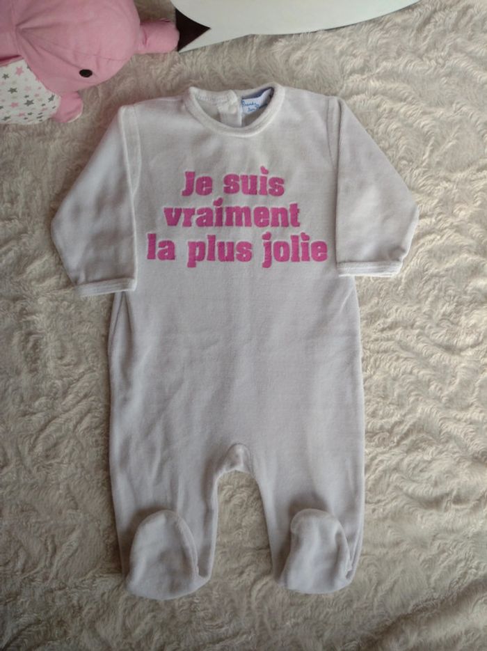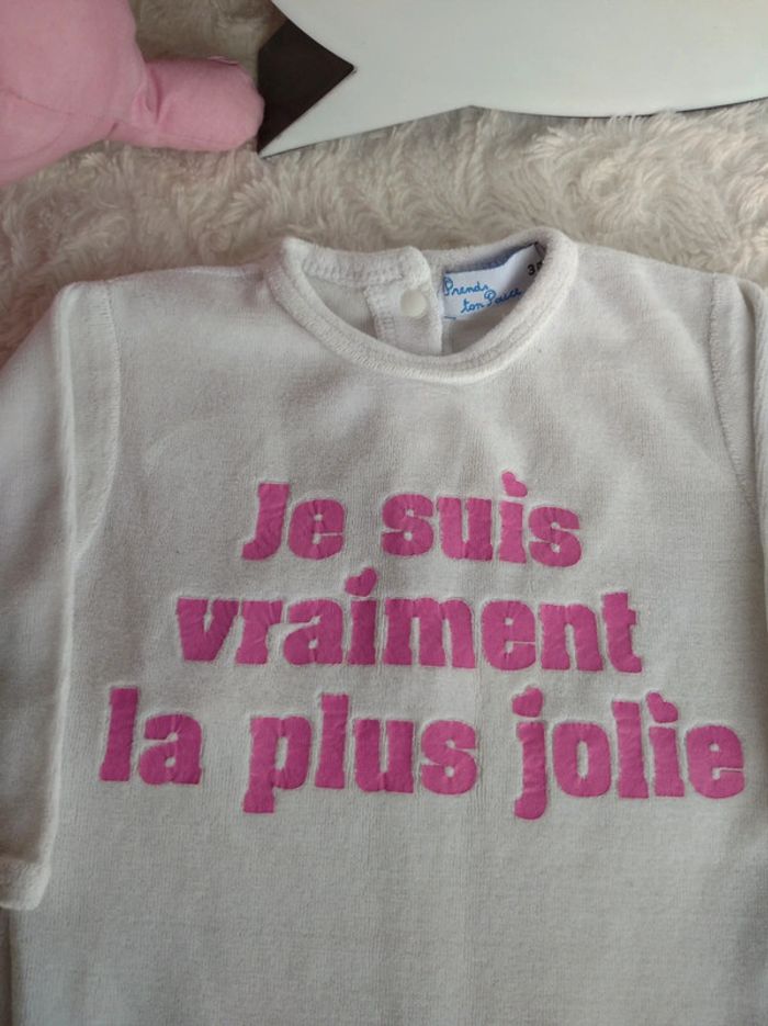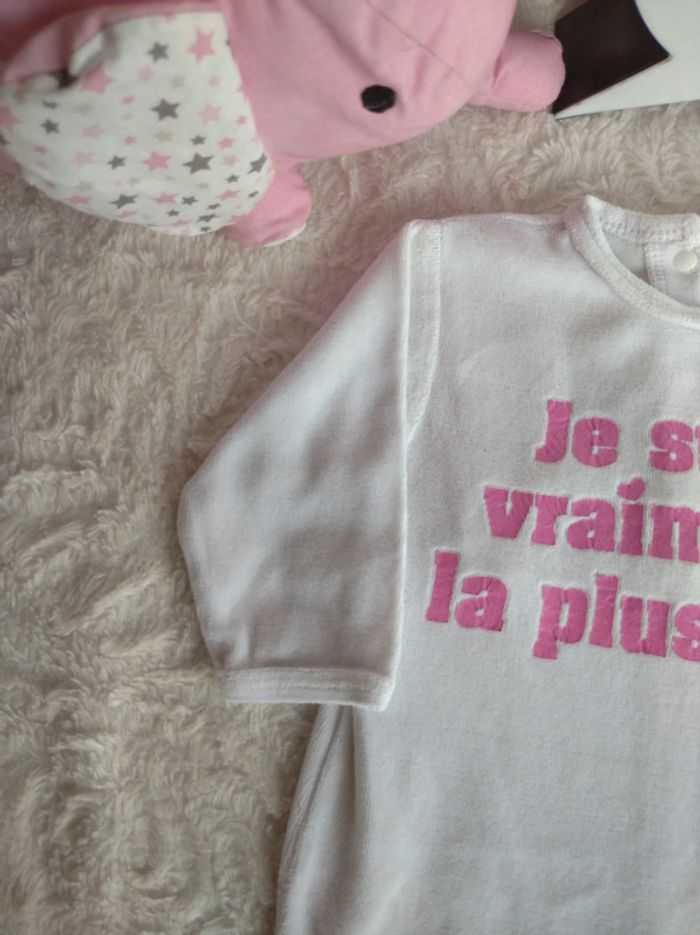 Pyjama grenouillère velours Fille 3 mois Je suis vraiment la plus jolie - photo numéro 8
