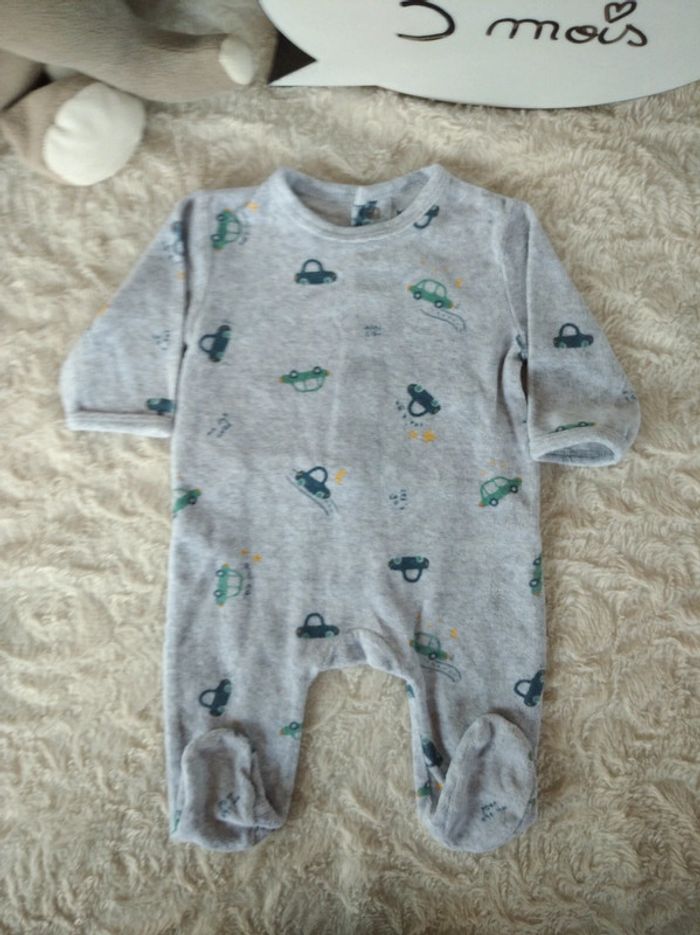 Pyjama grenouillère velours Garçon 3 mois Voiture Kiabi Voiture Eco conception coton bio