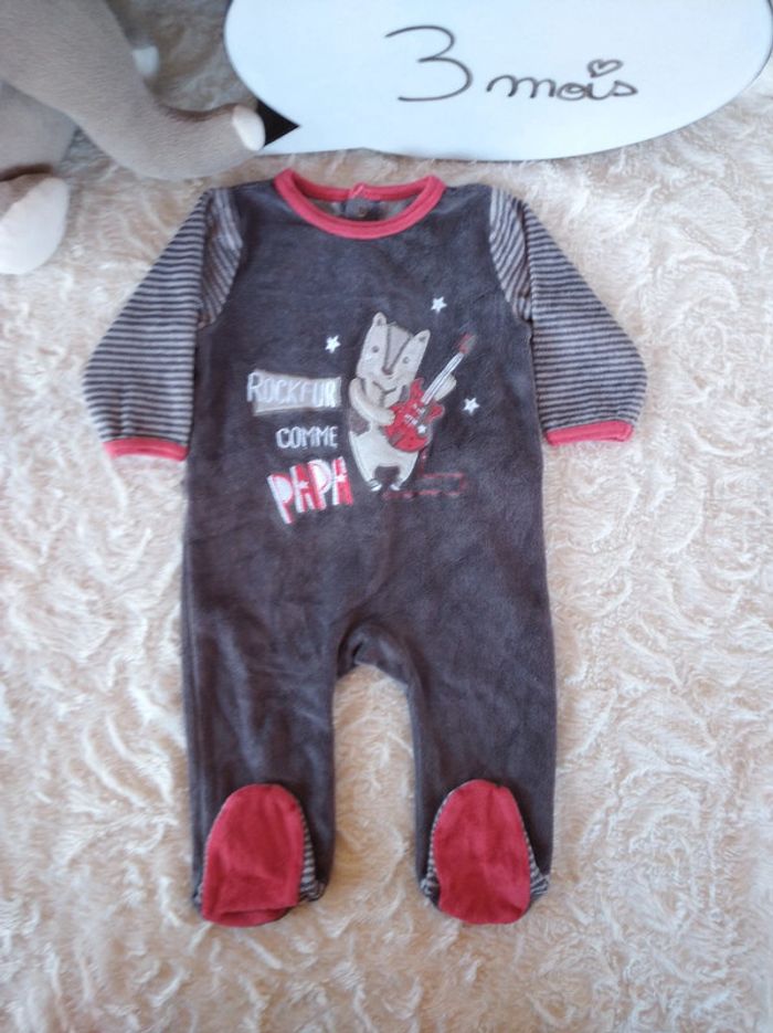 Pyjama grenouillère velours Garçon 3 mois Rockeur comme Papa guitare Gémo
