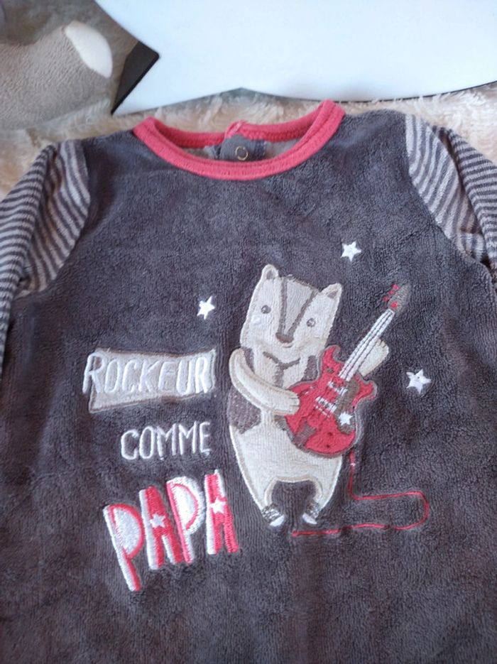 Pyjama grenouillère velours Garçon 3 mois Rockeur comme Papa guitare Gémo - photo numéro 3