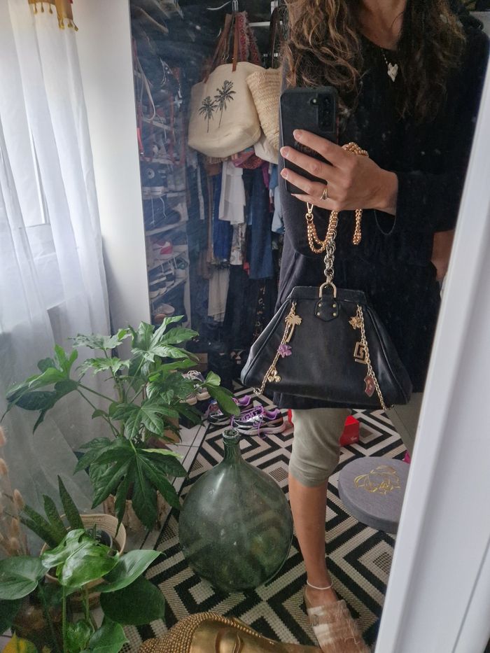 Sac cuir noir tres tres bon état, édition limitée 2011 en partenariat avec versace, se porte à la main, fermeture avec pression