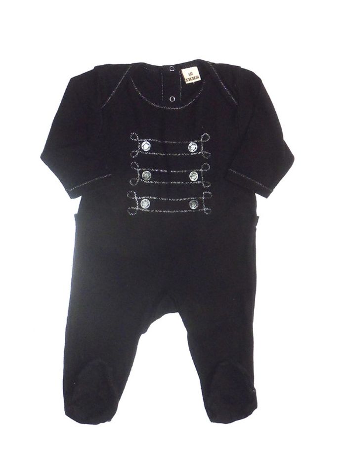 #karinelillefille6mois Dressing visible à montpellier Pyjama tout doux en coton et en excellent état de marque IKKS, noir orné d'un motif irisé.