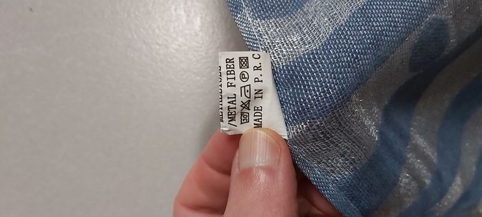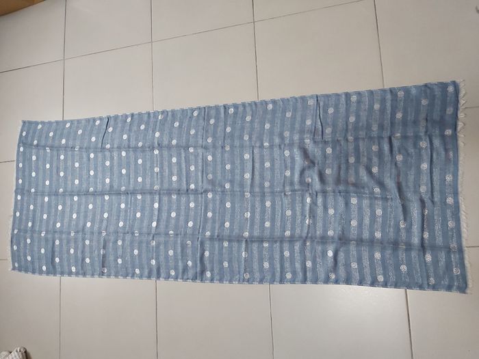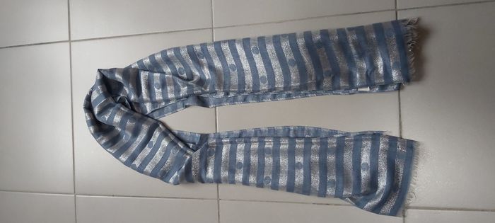 .Écharpe bleu et gris métallisée Dimension 183 x 68 Un léger défaut sur le bas d'un côté voir photo #carineddicasquette