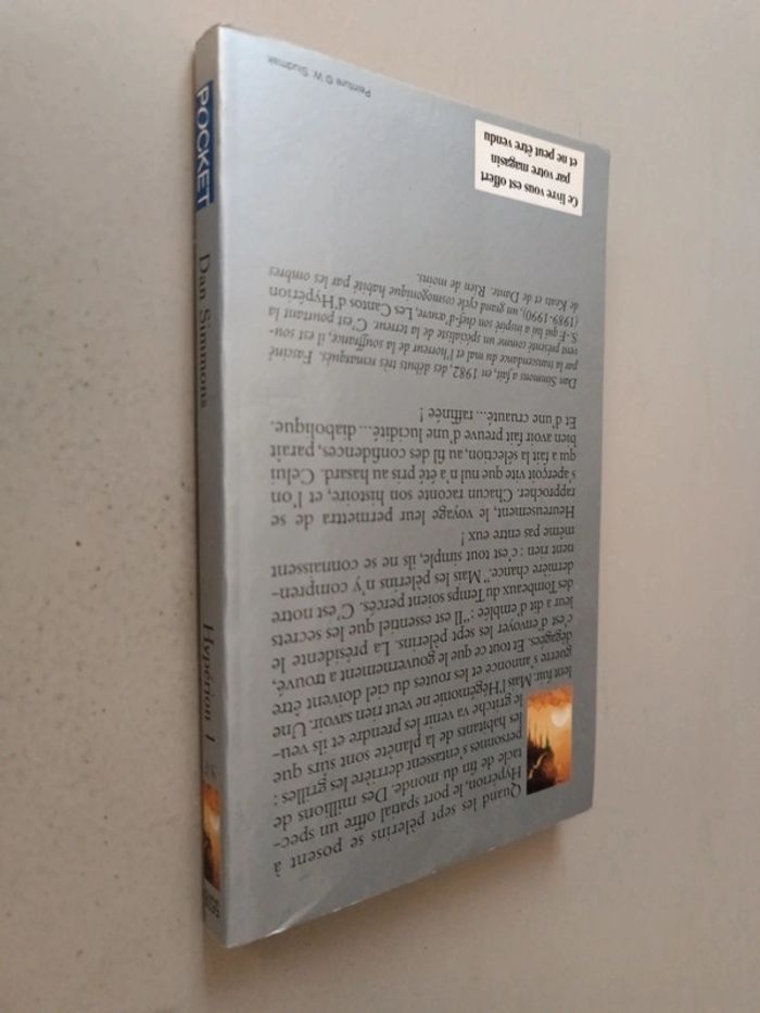 Dan Simmons les cantos d'Hyperion hypérion 1. Voici le lien pour voir tous mes livres : #romain75015_Livres et #romain75015_Science_Fiction. Envoi rapide et soigné bien protégé pour le transport. N'hésitez pas à faire un lot pour avoir des réductions et mutualiser les frais de port.