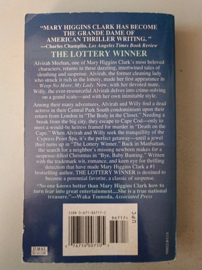 Mary Higgins Clark The lottery winner. Voici le lien pour voir tous mes livres : #romain75015_Livre et #romain75015_Mary_Higgins_Clark et #romain75015_livre_en_anglais. Envoi rapide et soigné bien protégé pour le transport.
