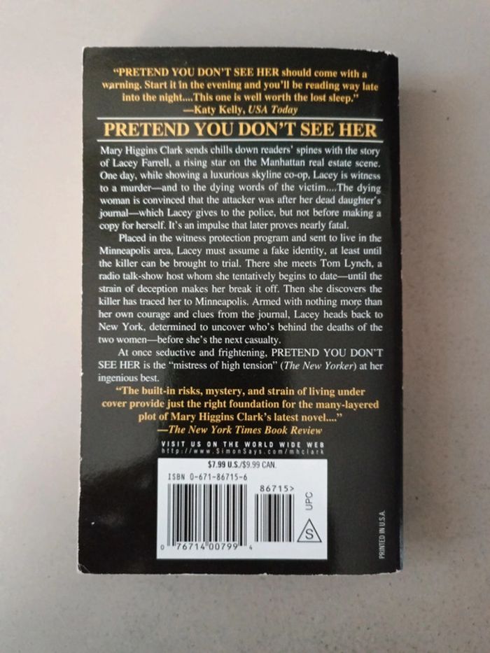 Mary Higgins Clark Pretend you don't see her. Voici le lien pour voir tous mes livres : #romain75015_Livre et #romain75015_Mary_Higgins_Clark et #romain75015_livre_en_anglais. Envoi rapide et soigné bien protégé pour le transport.