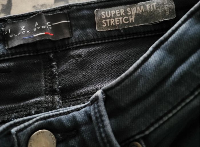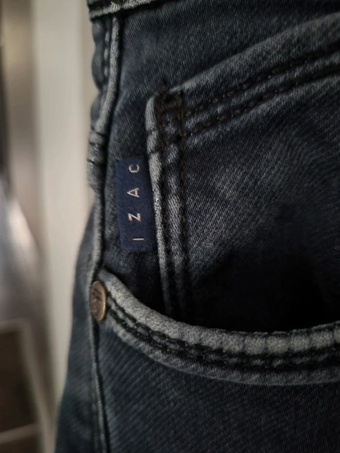 Jeans homme Izac bleu foncé taille 38. Poches avant et arrière passants pour ceinture. #jeansbleufoncehomme38 #jeanshomme38 #jeansizac38 #jeanshommeizac38 #izac38 #homme38evyemi #evyemi