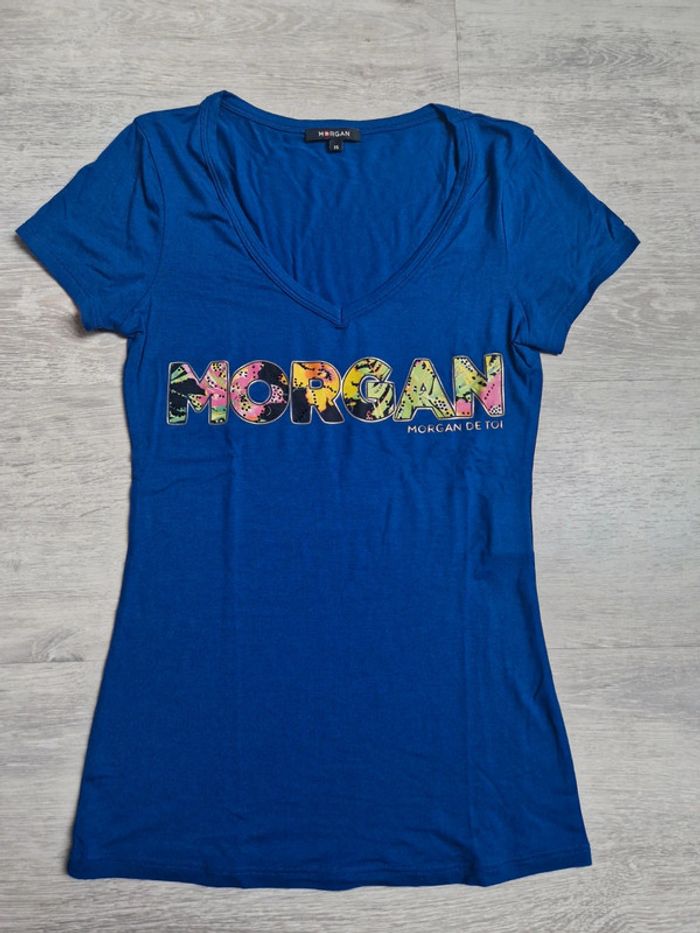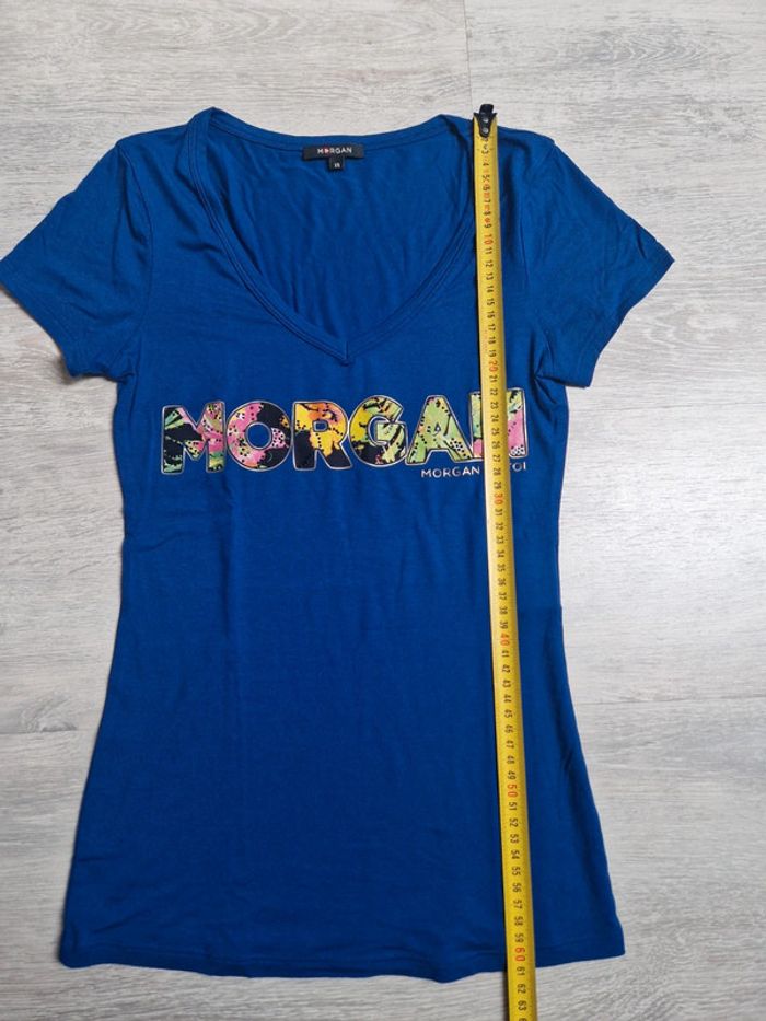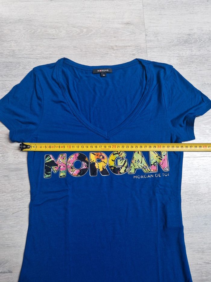 Tee-shirt neuf Morgan XS Bleu décolleté en V - photo numéro 1