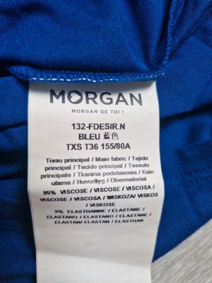 Tee-shirt neuf Morgan XS Bleu décolleté en V - photo numéro 3