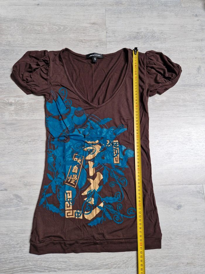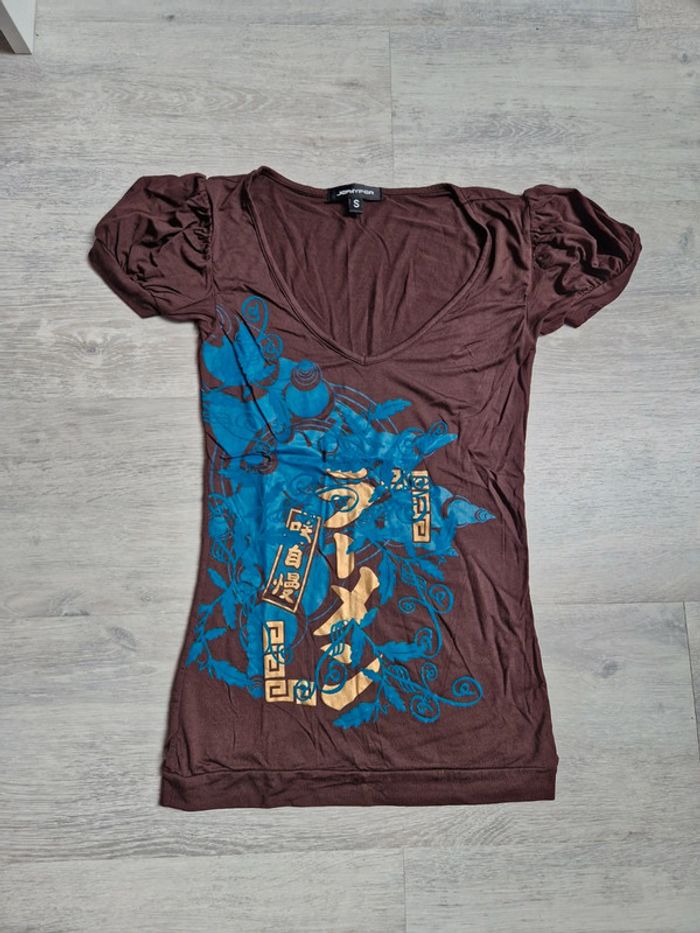 Tee-shirt manches courtes Jennyfer marron turquoise et doré #julilo7femme Taille S mais taille petit