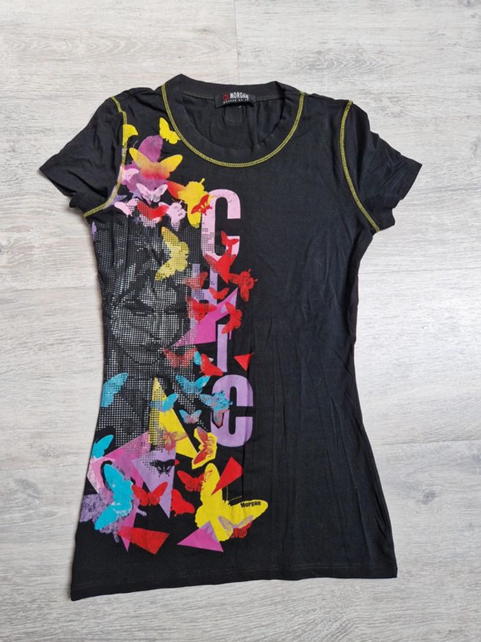 Tee-shirt noir Morgan avec papillon neuf XS - photo numéro 2