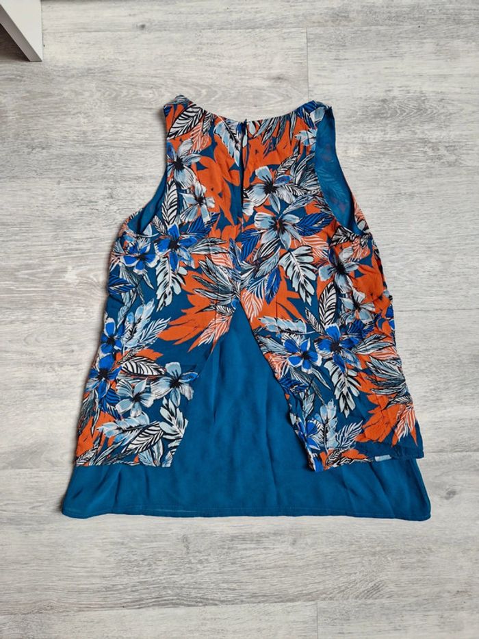 Joli débardeur Promod bleu canard avec fleurs #julilo7femme Le dos est très joli avec doublure en voile Taille 34