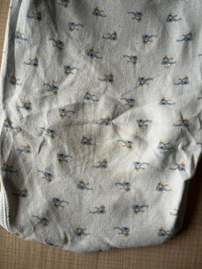 Lot de 5 bodies Manche longue avec pression ventrale Plusieurs taches niveau du col et des cuisses sur 3 bodies