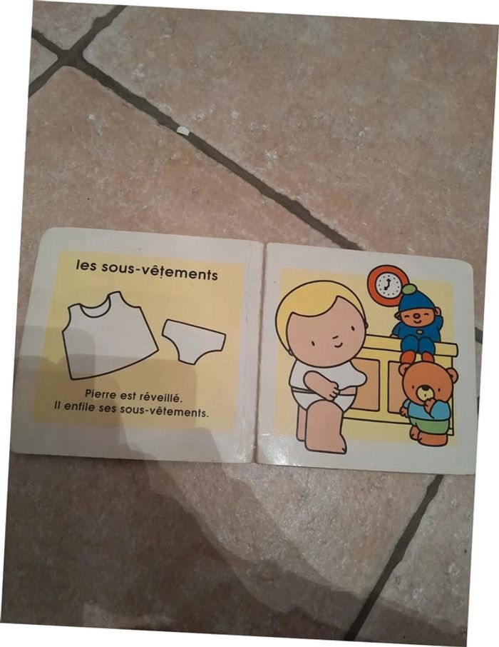Bon état, abimé aux coins et réparé à l'intérieur à la première page (voir photo) Entre 1 et 3 ans Parfait pour apprendre aux tout petits avec des images, de façon ludique, comment mettre ses vêtements et surtout quoi mettre ! Réduction allant jusqu'à-15% si achat en lot D'autres livres pour enfant sont dans mon vinted !