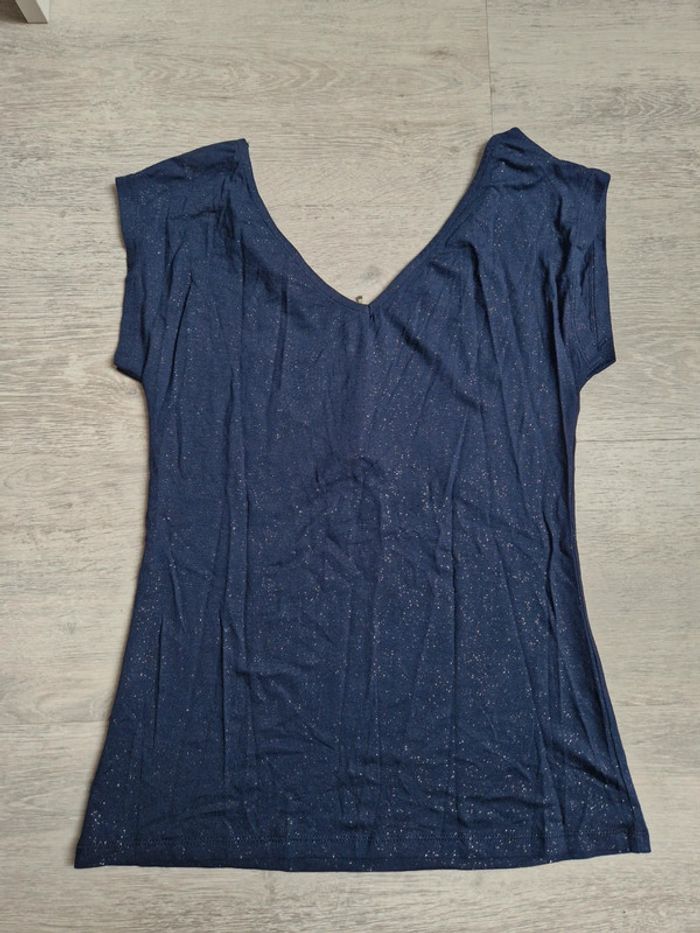 Tee-shirt bleu marine effet pailleté argenté Grain de Malice XS - photo numéro 1
