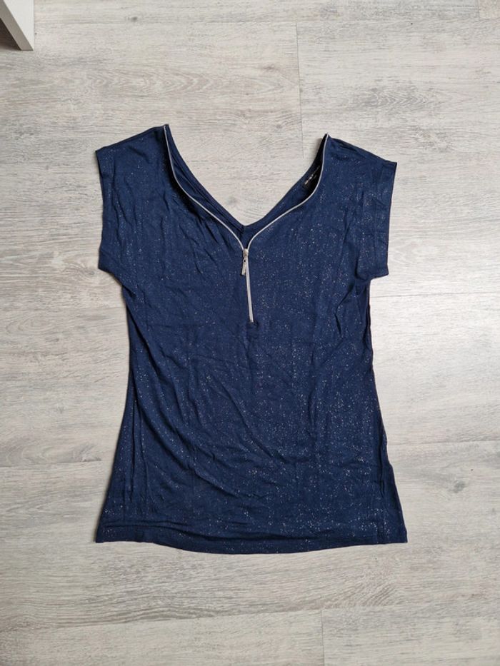 Tee-shirt Grain de Malice XS #julilo7femme Bleu marine avec effet pailleté argenté et fermeture éclair Excellent état : porté une fois