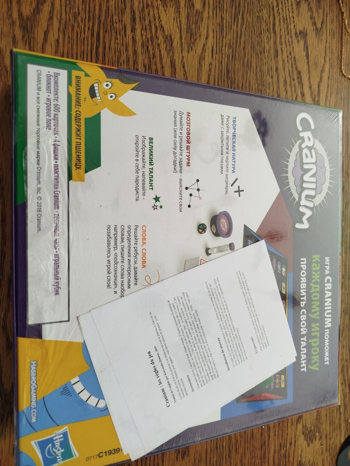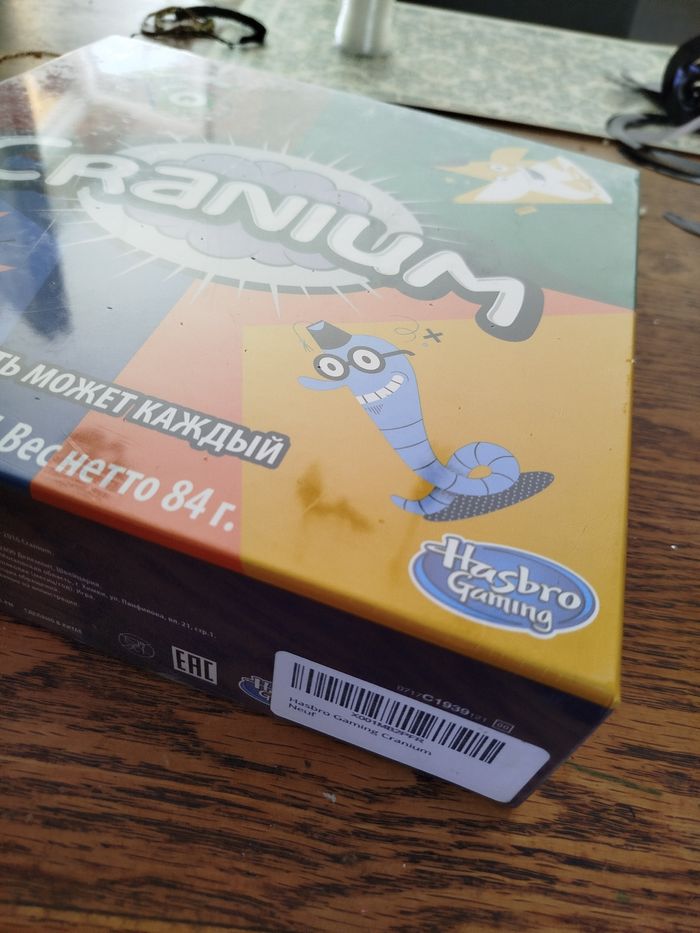 CRANIUM ÉTAT : NEUF ENCORE SOUS BLISTER MARQUE : HASBRO GAMING ÂGE : À PARTIR DE 16 ANS Cranium: jeu de société où le but du jeu est de gagner en sculptant, en mimant, en résolvant des casse-tête, en fredonnant et même en épelant à l'ennemi ! Version française. Principe du jeu: une fois les équipes constituées, déplacez-vous sur le plateau et jouez l'action de la carte avant la fin du sablier ! l'équipe remporte la partie lorsque vous êtes au centre du cranium ! A partir de 4 joueurs. Temps de la partie: environ 30 minutes. Âge recommandé: à partir de 16 ans. Accessoires inclus: 600 cartes, 4 pions, pâte à modeler cranium, sablier, dé, Bloc-notes, plateau de jeu et les règles du jeu en français. Aucune pile n’est nécessaire. Vous aimez les jeux de société et partager un moment en famille ou entre amis? Cranium est le jeu parfait à offrir en cadeau pour les enfants, filles et garçons de 16 ans, 17 ans, 18 ans et plus. Valeur éducative: apprendre, partager, s'amuser