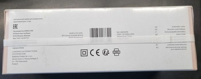 Appareil à boucles automatique babyliss curl Elegance 2660NPE Notre boucleur automatique Curl Secret Elegance est équipé d’une technologie révolutionnaire, permettant de créer automatiquement des boucles parfaites à chaque utilisation. Les cheveux sont délicatement aspirés dans la chambre en céramique, dans laquelle ils sont maintenus et chauffés uniformément pour créer une boucle définie et longue tenue. L’alternance du sens des boucles permet de créer un look superbe et naturel. Un produit de notre collection Elegance. EMBALLAGE ENTIEREMENT RECYCLABLE Parce que l’innovation va de pair avec le changement, chez BaByliss, nous avons mis en place des mesures afin de supprimer tous les emballages plastiques à usage unique de nos emballages. Dorénavant, à la place des sacs plastiques, vous ne trouverez dans nos boîtes que du papier et du carton entièrement recyclables. Ils protègent vos produits afin qu’ils vous soient livrés en parfait état et prêts à l’emploi. ATTRIBUTS Un réglage simplifié pour créer des boucles parfaites Boucleur 100% automatique pour un résultat garanti Sens des boucles alterné pour un effet naturel Chambre en céramique pour des cheveux soyeux 2 températures 185°C et 205°C Chauffe rapide Cordon rotatif de 1,8m