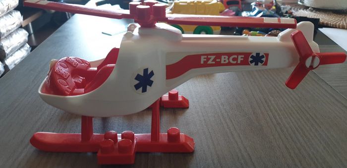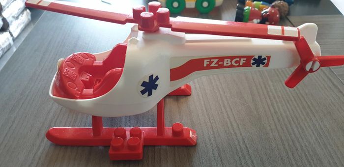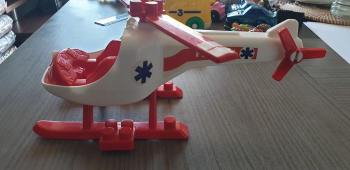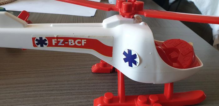 Hélicoptère avec possibilité de mettre une figurine devant (non fournie) Bon état juste autocollants qui se décollent légèrement, voir photos