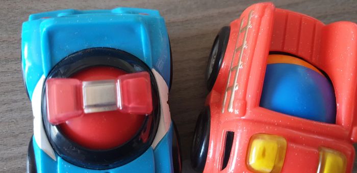 2 voitures police et pompiers Avance avec la boule qui les fait rouler Parfait état