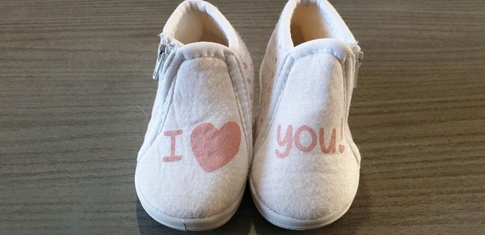 Chaussons i love you taille 20 Très bon état comme neuf Kiabi