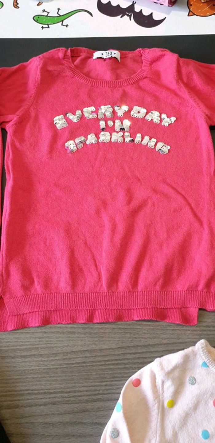 5 pulls légers dont un avec des sequins qui changent de couleur au toucher (voir photo) 4/5 ans Tex Parfait état