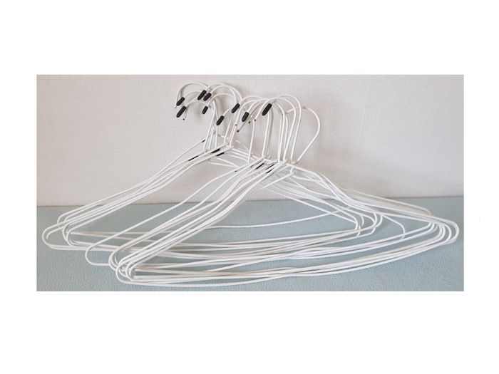 Cintres lot 1. Lot de 16 cintres blancs en fer fin. Longueur : 40 cm. En bon état. Sans marque. 3,50€. #vero38110adultesdivers