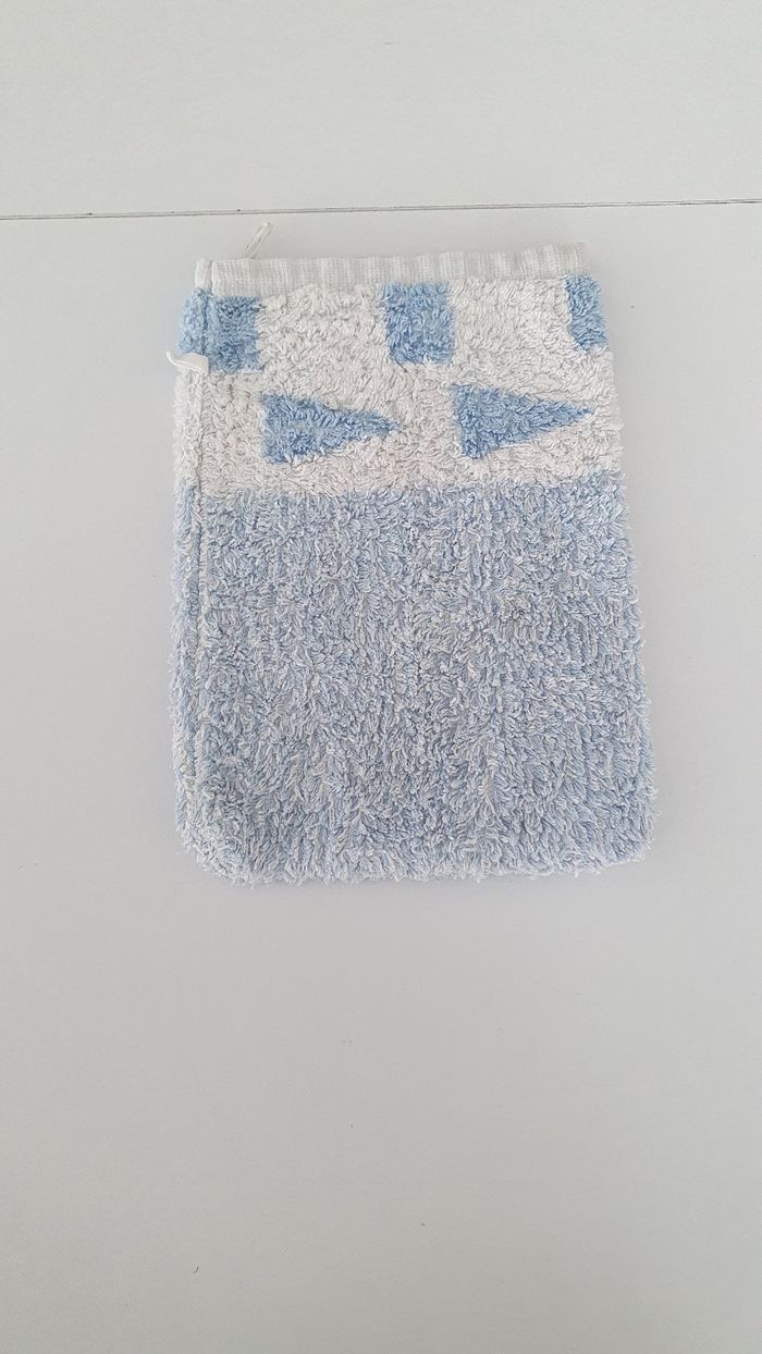 Gant de toilette bleu et blanc - photo numéro 1