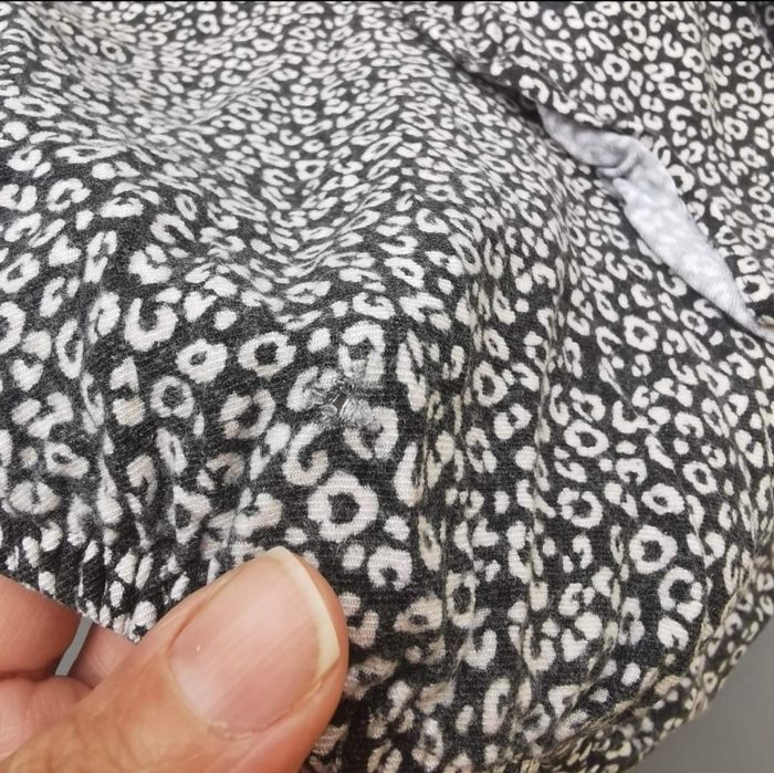 En très bon état j ai un petit défaut cf photo dû à l antivol du magasin (je m en suis rendu arrivé à la maison et pas eu le temps de retourner au magasin pour échange ) 8 ans ou 128 cm Courte type croc top (arrive à la ceinture du pantalon) Zara Noir et blanc