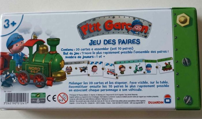 Jeux des paires carte à assemblée p’tit garcon de chez