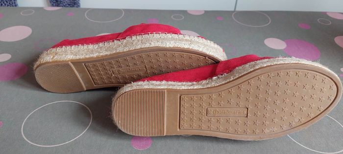 Superbes espadrilles femme Stradivarius 38 compensées velours rouge neuves - photo numéro 7