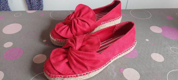 Superbes espadrilles femme Stradivarius 38 compensées velours rouge neuves - photo numéro 1