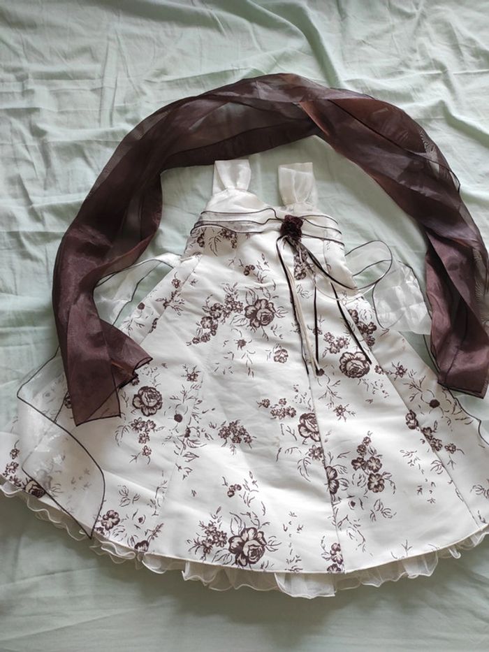 #tingvie2a Robe de cérémonie taille 2 ans écru et chocolat avec étole