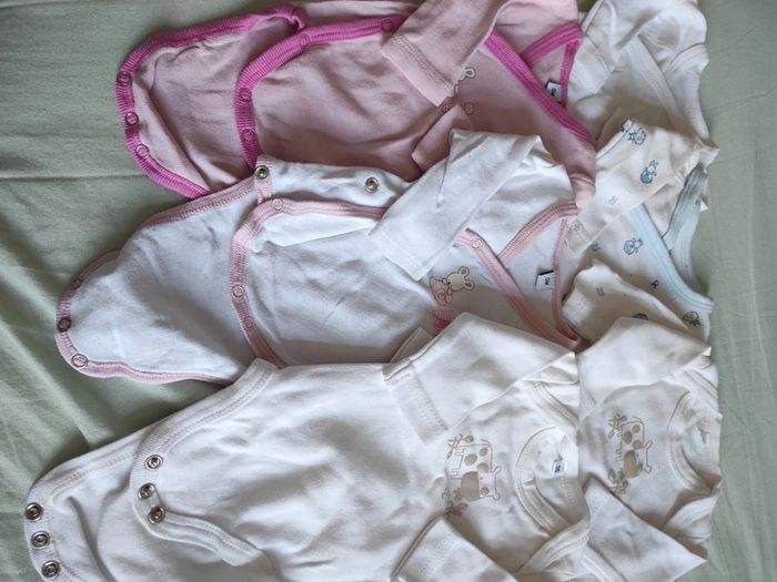 #tingvie0m Lot de 6 bodies manches longues taille naissance. Quelques tâches